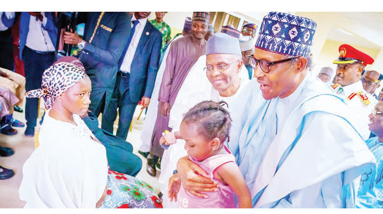 “Before boarding NAF 001 back to Abuja from the Kaduna International Airport, Buhari detoured to the hospital, where he also thanked the Nigerian military for their brave services in securing the safe release of the hostages from Boko Haram terrorists.”