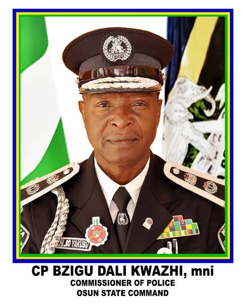 Osun State welcomes its new Commissioner of Police, Bzigu Dali Kwazhi, who assumed duty on Thursday, January 4, 2024, succeeding CP Isyaku Mohammed. The announcement was made by SP Yemisi Opalola, the Public Relations Officer of the Osun State Police Command.