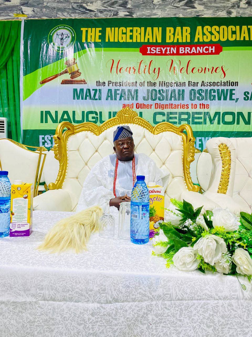 “The Okere of Sakiland, Oba Dr. Surv. Khalid Oyeniyi Olabisi Oyedepo III, today attended the inaugural ceremony of the Nigerian Bar Association (NBA), Iseyin Branch, held at the Iseyin City Hall, Oja-Oba, Iseyin.